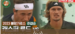 즈베레프와 루드의 경기에서는 루드가 세트 스코어 3:0으로 승리합니다. 상대전적은 2:2로 팽팽하나, 22년 23년 최근 2차례는 루드가 승리했습니다. 루드는 나달 아카데미 출신으로 나달 플레이를 보고 플레이도 닯아 있어서 더 안정적이고, 강한 스트록으로 승리합니다. 베이스 라인보다 2m 가까이 떨어져서 스트록 플레이를 거의 하다가 간간히 네트플레이로 포인트를 쌓아 갑니다.